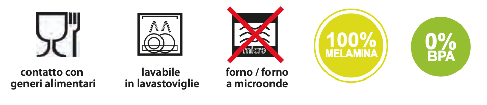 Tutti i prodotti della linea “Touch-Mel” sono in melamina di alta qualità, che rispetta i regolamenti comunitari e nazionali in ambito di norme di salute e sicurezza.