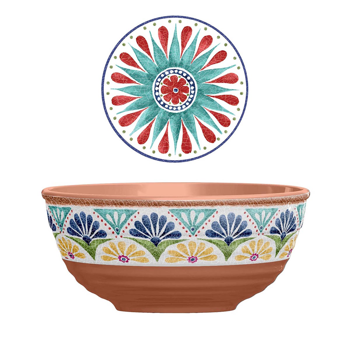 Our melamine serving bowl looks like a European antique and takes center stage on your table. Extra-tough, hard-wearing and scratch and stain reisistant , it’s ideal for all your summer salads.